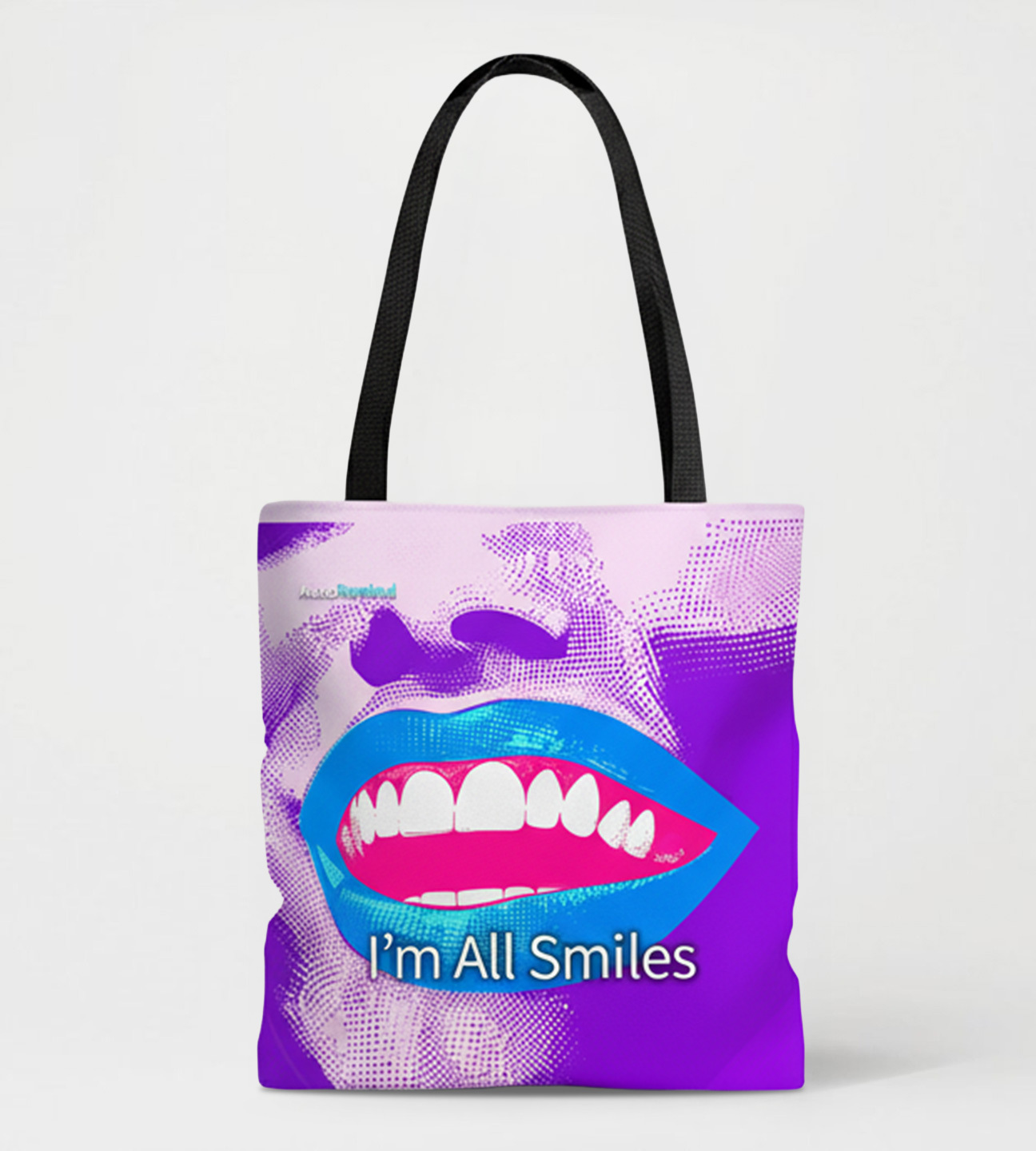 Turn heads with the “I’m All Smiles” Tote Bag! Featuring a pop-art inspired design full of vibrant colors and dazzling smiles, this tote is all about good energy and joyful style. Perfect for anyone and fabulous—whether you’re off to work, school, or a day in the city, this bag makes happiness your best accessory.